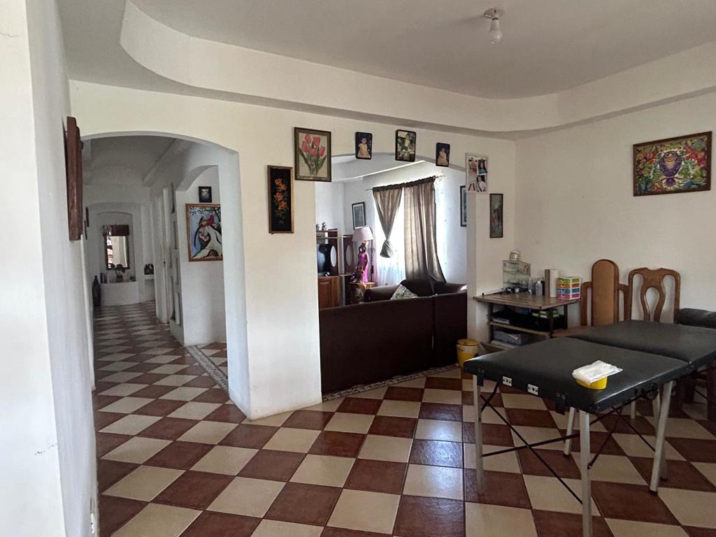 Sala, comedor, cocina, dos baños, tres habitaciones, sala de TV, área de lavado, cochera y terraza.